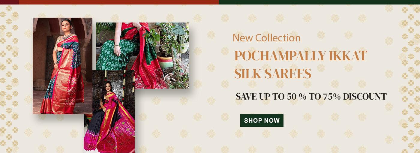 At PochampallySarees.com, we celebrate the exquisite beauty of Pochampally ikkat sarees, a hallmark of Indian craftsmanship. Nestled in the heart of India, Pochampally is renowned for its intricate handloom sarees, where each piece tells a story through vibrant colors and unique patterns.