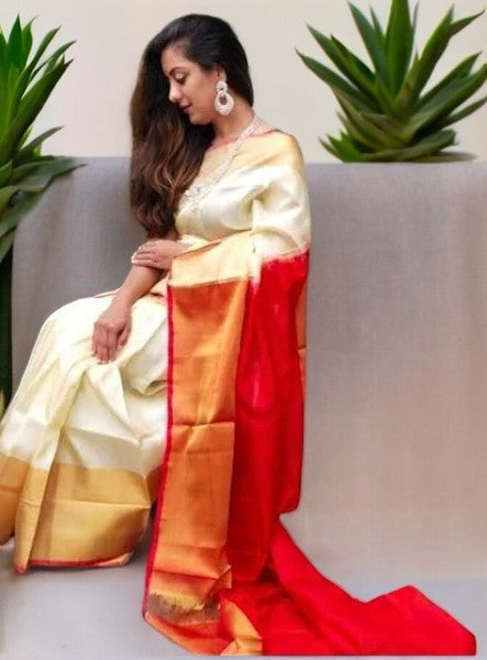 PURE SOFT SILK SAREE BODY GREEN BORDER RED SARI