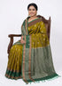 3. Is this saree suitable for a wedding guest? Absolutely. The combination of the deep olive tone and the rich emerald zari pallu makes it a perfect, sophisticated choice for wedding functions and formal occasions.
