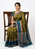 Striking Contrast: Features a unique and eye-catching color palette with an olive green body and a rich, contrasting teal blue border and pallu.