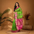 KUPPADAM PATTU BODY PARROT GREEN BORDER AND PALLU PINK SAREE
